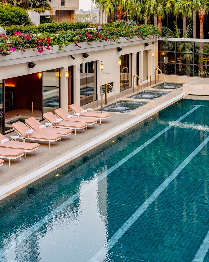 The gym floors are huge and even have a rock climbing wall and an altitude room. I usually skip the gym and go straight to the rooftop wellness centre. It is AMAZING, It’s like a resort. A large pool surrounded by padded deck chairs sourced from something out of Architectures Digest, umbrellas and a cafe. You head inside and down to the change rooms and pop your stuff in a locker. Then you head up to the roof where you can jump in one of four warm magnesium spas, three cold plunges, salt room, snow room, steam room, dry sauna and 8 inferred saunas.