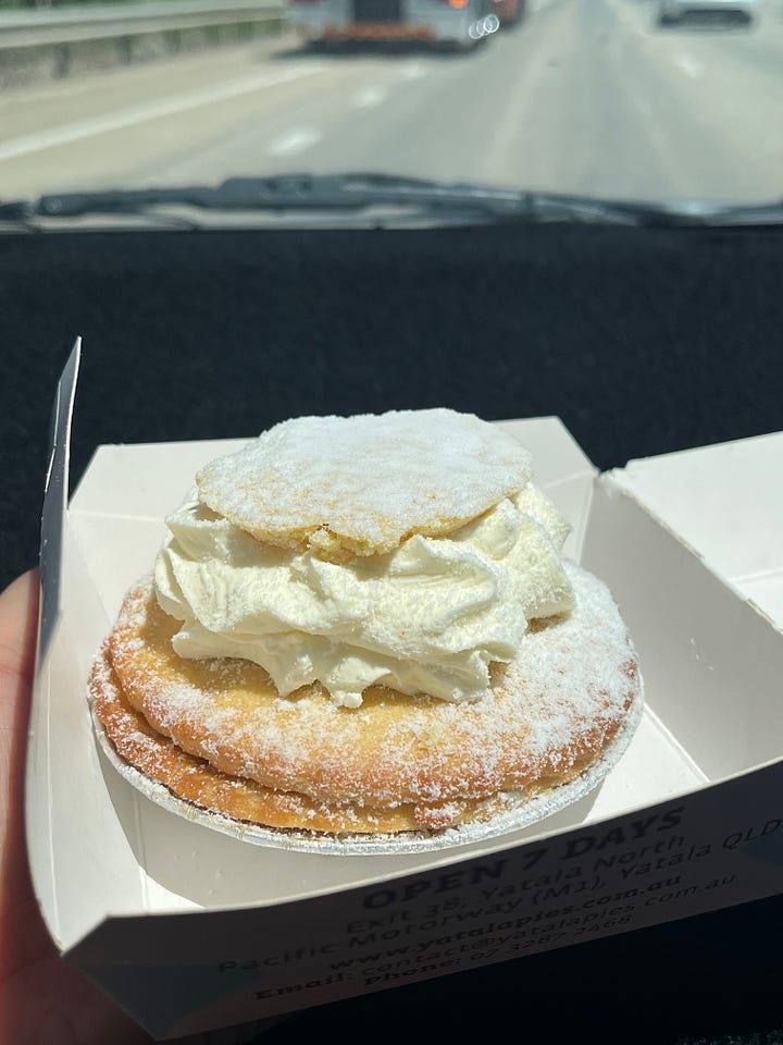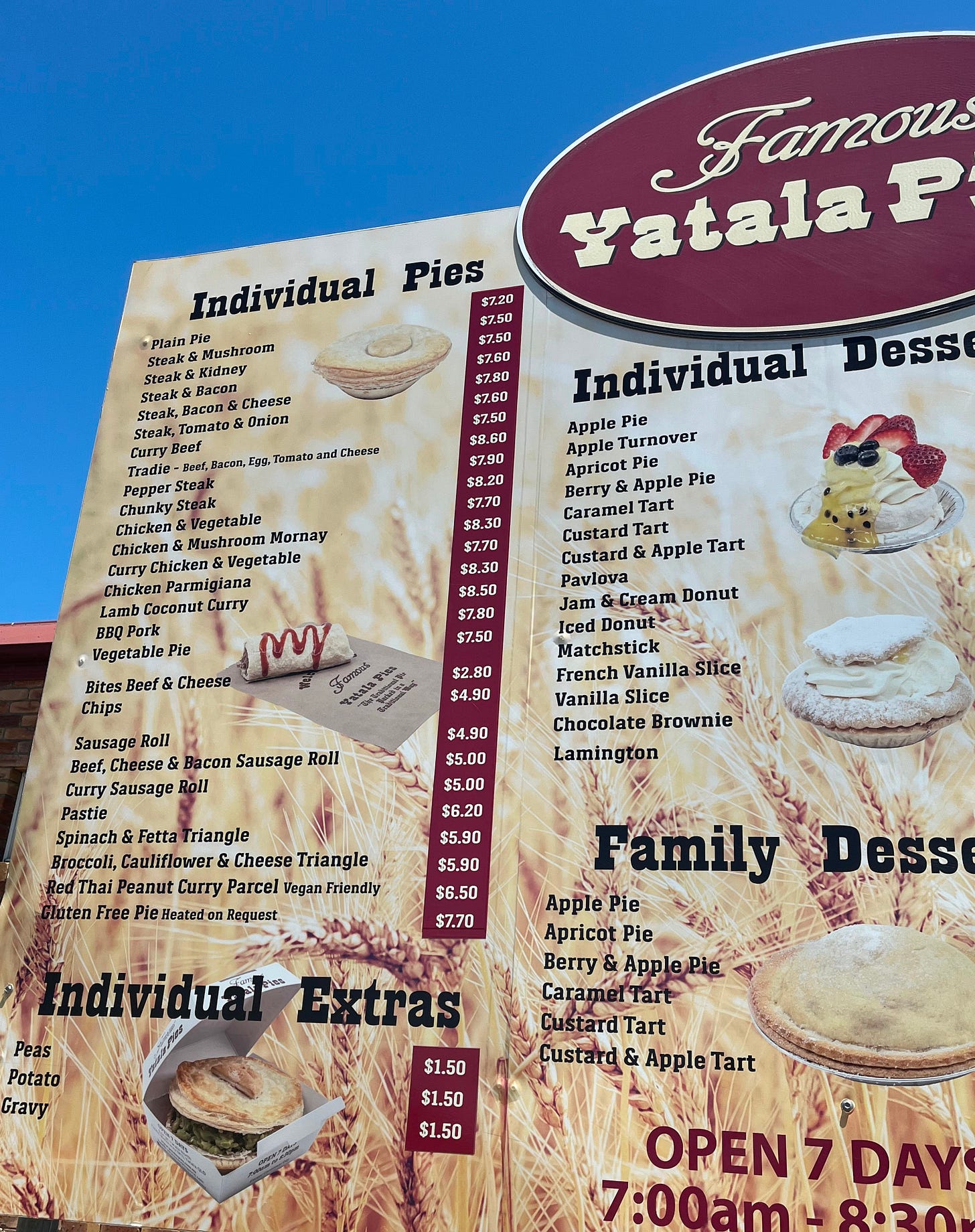 Thirty seconds before the Yatala Pies exit (yes, there’s a sign), I suggested to my partner that we should stop at the 130-year old pie shop. We were passing through to Byron for the weekend and were trying to catch as much poolside time as possible, so chose to go through the drive thru, which I didn’t even know they had. It’s probably busy 24/7 but don’t fret, it’s a well-oiled machine: a staff member would come up to your window, take your order and payment and you’d pickup your food on your way out. In and out in five minutes.