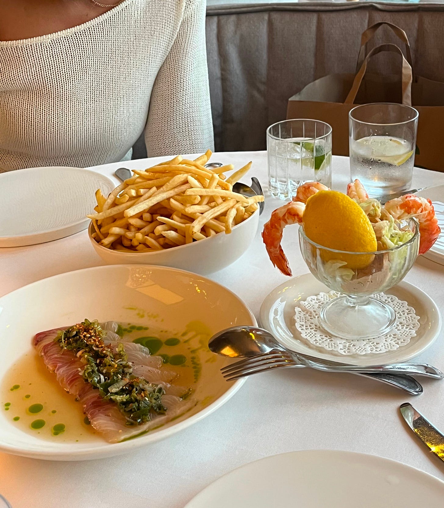 One average Martini later (not cold enough), starters were here. The prawns in the prawn cocktail were tender and seasoned well but the lettuce was overly wet and the Marie Rose sauce was lacking acidity. Kingfish crudo with scallion and ginger (Hainanese chicken-coded) was pleasant but for $36, I expect more creativity in the accompaniments. Not every crudo can be a Gimlet crudo but this was a Donna Chang/Snackman effort.