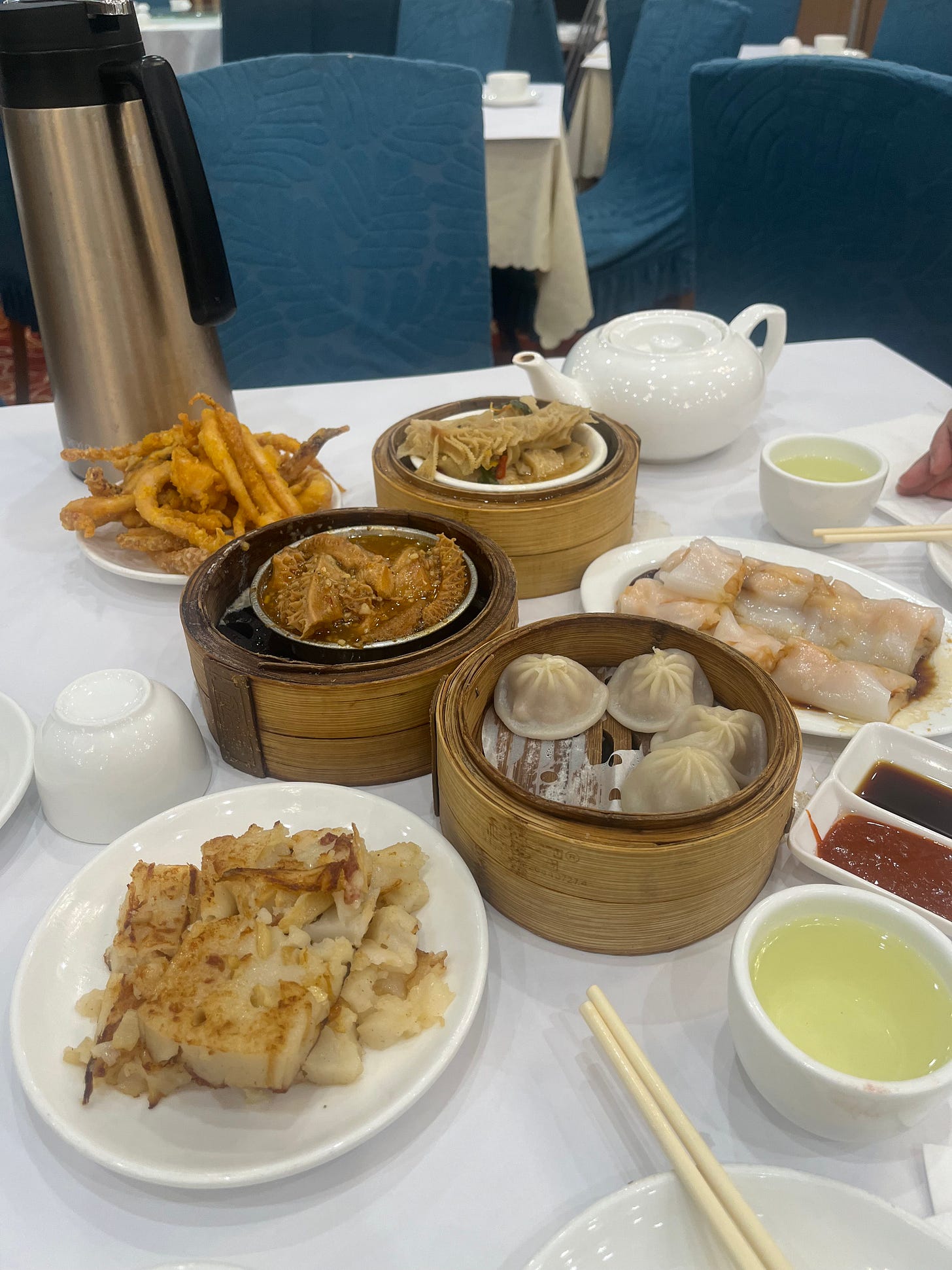 Parkland Restaurant has been around for a while — you can tell by the decor and lighting. They still do the carts here, something that virtually went extinct after Covid, but it’s kind of half-in, half-out — some of the carts go around but if you know what you’re after straight away, you can go to the front of the restaurant where you can order or pick from the tens of stacked steamer baskets or the fried foods in the cabinet. She’ll give you a tray full of your chosen goodies and back to your table you go. Very efficient.