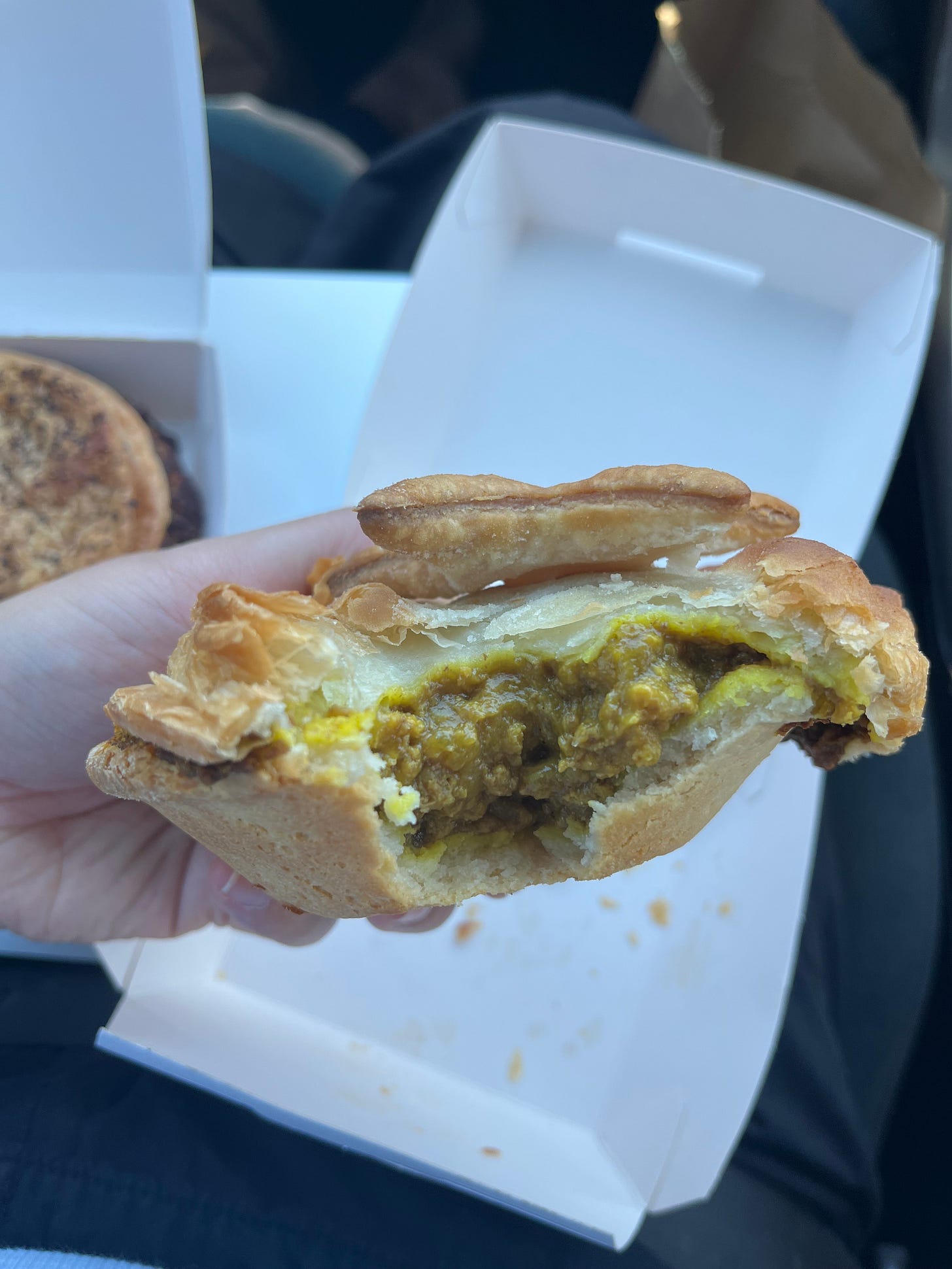 The pie selection is as classic as they get. The main options are varieties of steak or chicken and one lamb, pork or vegetable option. We ordered the pepper steak and lamb coconut curry. The pastry on top was golden and crisp. The bottom pastry had a excellent structural integrity (for all those tradies and roadtrippers eating while driving) and thickness. The filling of both pies were the perfect consistency. In the pepper steak, there was the right amount of pepper — very fragrant but not overwhelming — and the lamb curry packed a little heat too.