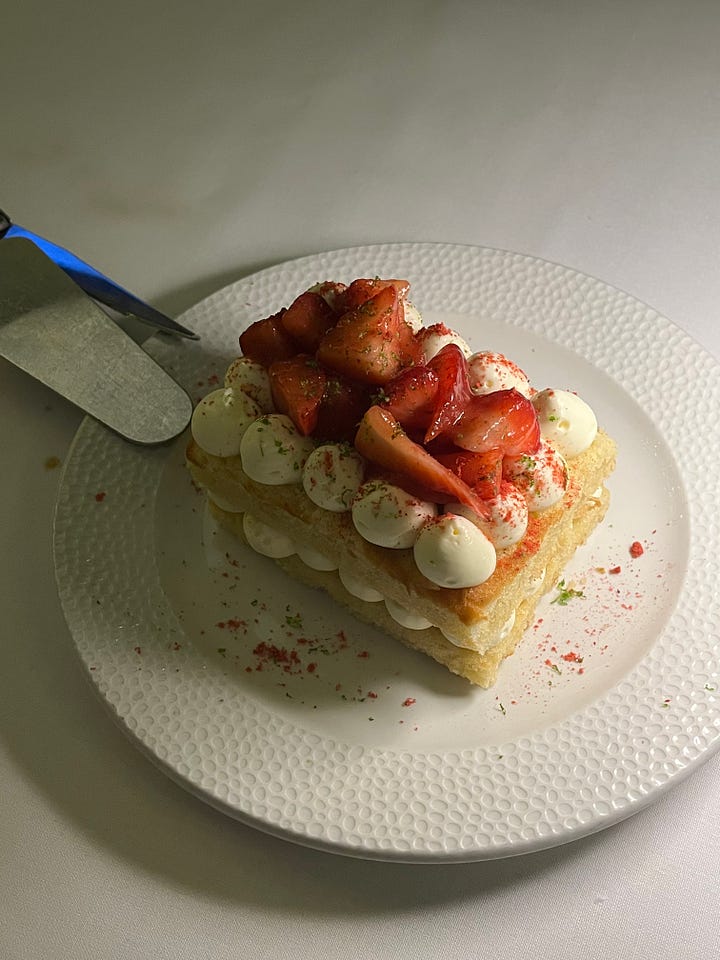 I love how classic the desserts are at SK. Firstly, soft serve table service is every child and adult’s dream way to end a meal. The toppings are nostalgic and not-too-serious: ice magic, hundreds and thousands, flake, cookie dough, Reese’s pieces and maraschino cherries. The signature strawberry cake had soft, moist sponge, sweet macerated strawberries and light mascarpone cream — a must.