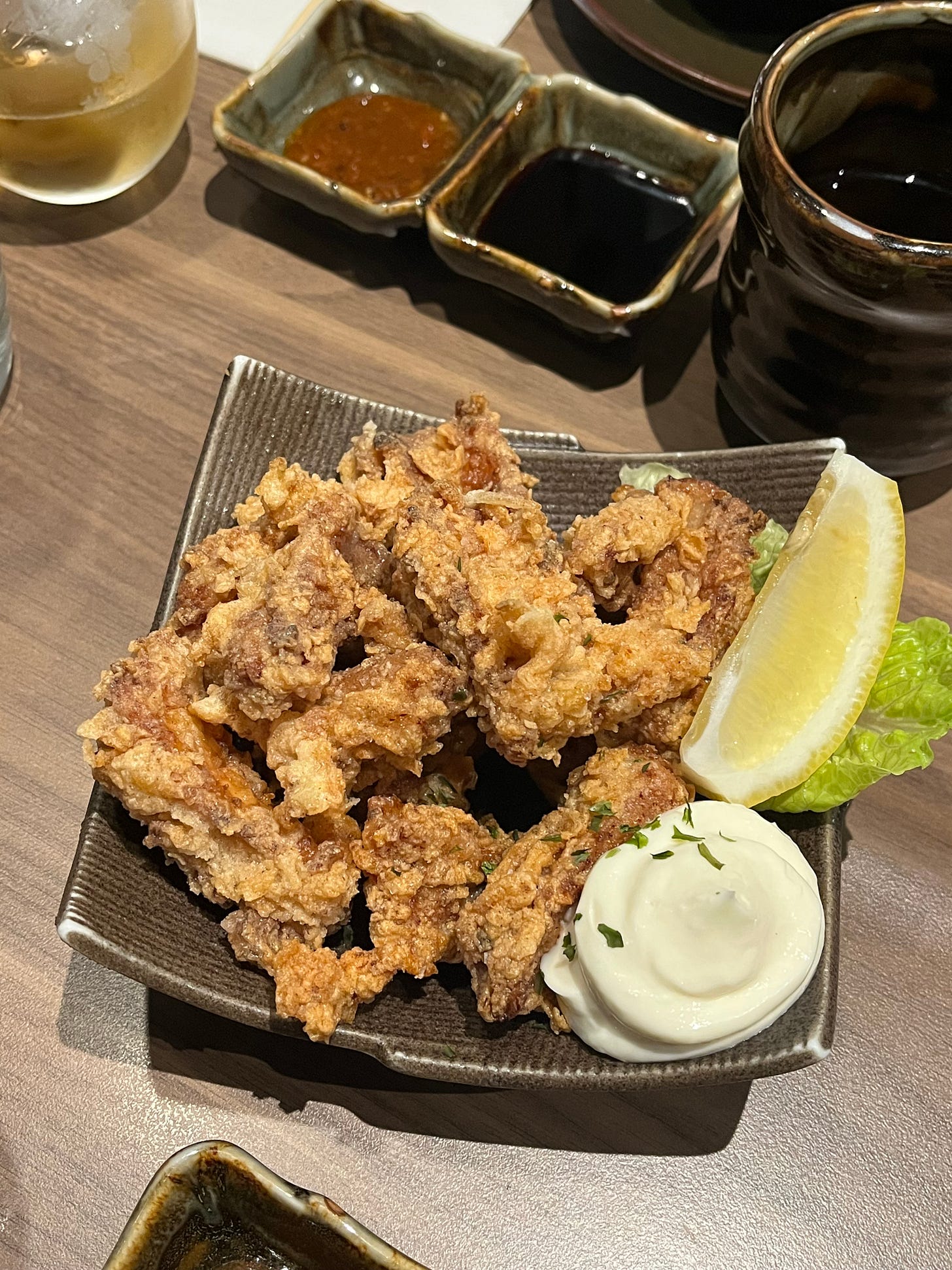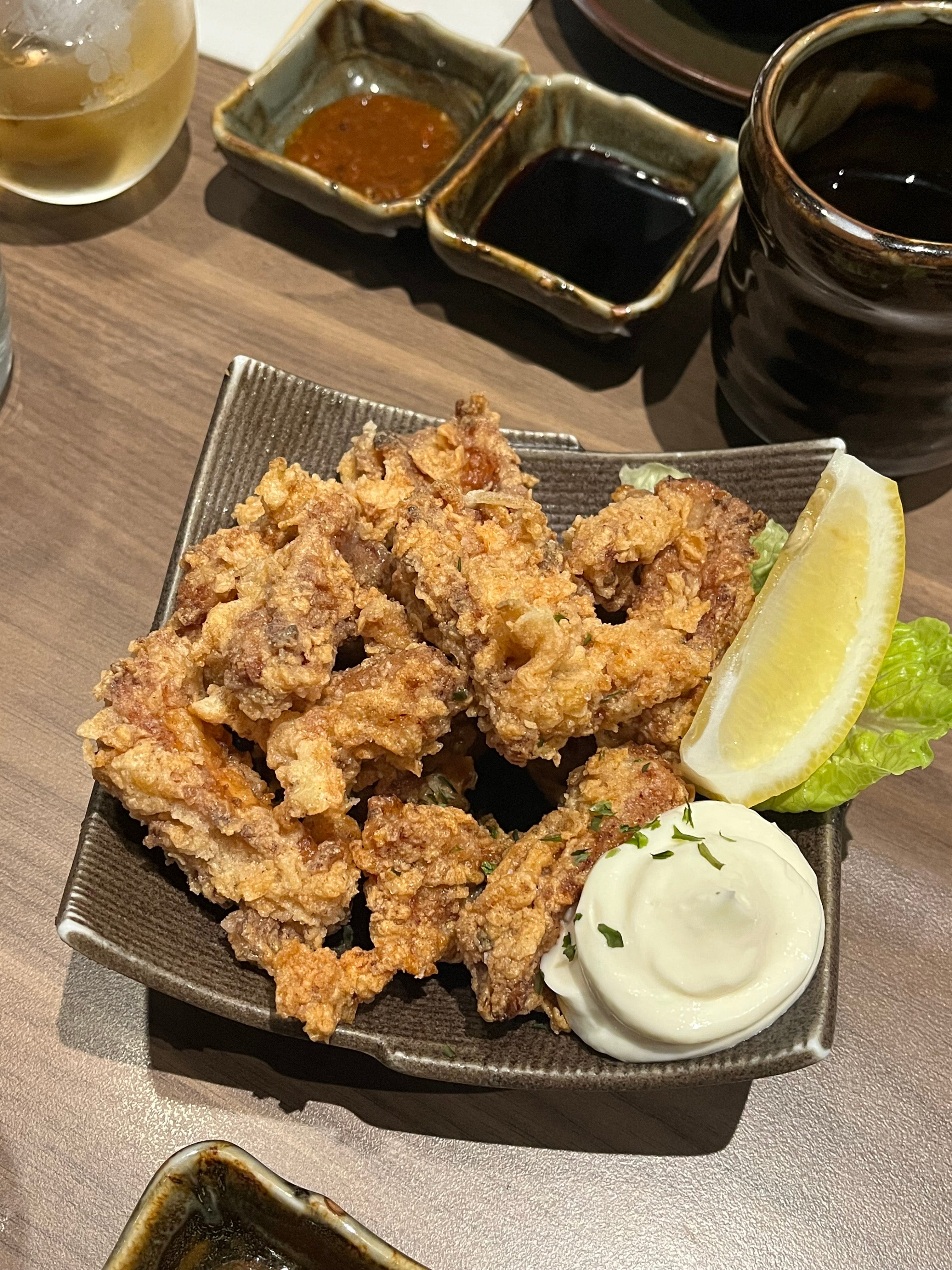 There is, however, only one thing I would drive up three flights of narrow concrete for: fried chicken cartilage. That’s right — bite-sized pieces of crunchy chicken cartilage (the white stuff that’s neither bone nor meat, edible I promise) dipped in karaage batter and fried until golden. Squeeze of lemon, dip of kewpie, bob’s your uncle. It’s crunchy, light, textural heaven.