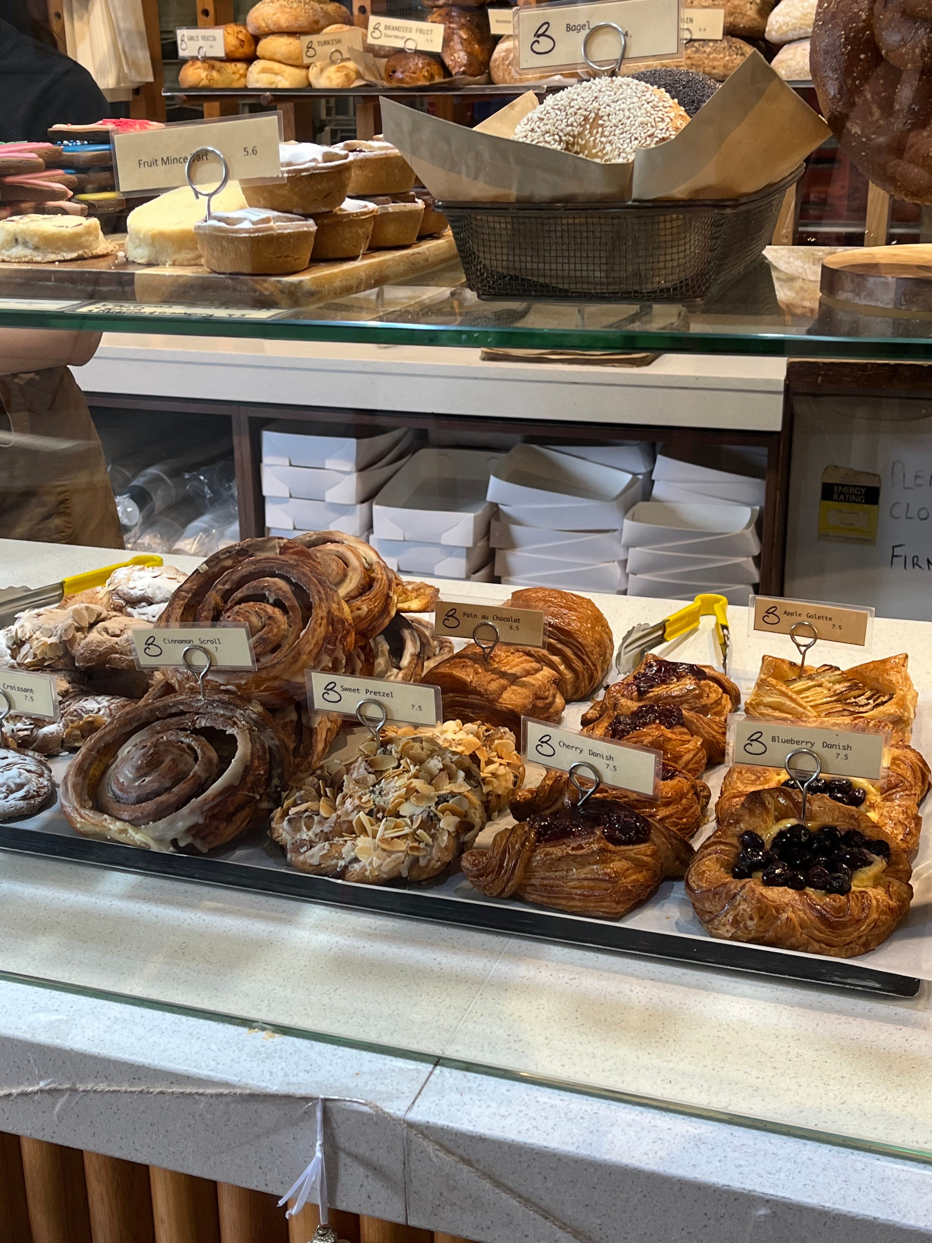 French patisserie/boulangerie: lots of wood, simple design, fresh fruit danishes, kouign amanns, very golden brown very voluminous plain croissants, gargantuan almond croissants.