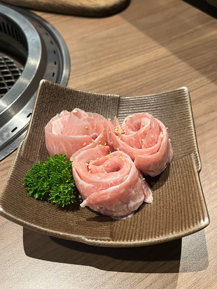 Of course, I didn’t go to Japanese barbecue just for cartilage (but don’t threaten me with a good time) — the meat selection was small but had all the essentials and more: basic cuts of wagyu, A5 wagyu, pork belly and jowl, marinated chicken thigh and veg.